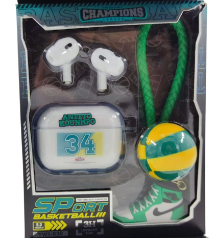 Auriculares Inalámbricos Sport Basketball TWS-K30 – Edición Deportiva Set de auriculares Bluetooth con diseño inspirado en el básquet, ideal para fans del deporte y para regalar. Características importantes
